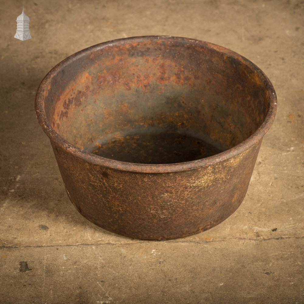 The maker’s mark is cast into the base. Made from durable cast iron, it shows signs of age and wear, adding character and patina. The cauldron is watertight, so drainage holes would need to be drilled if used as a planter. Ideal as a decorative feature or functional vintage piece.